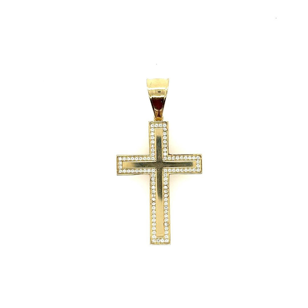 PEND.CROIX OR JAUNE 10KT, CZ, 35.5MM